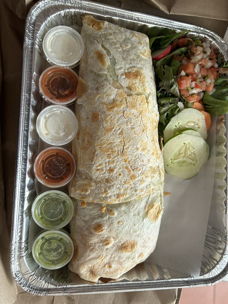 Flour or Wheat tortilla, one choice of protein, two mixcheese.
